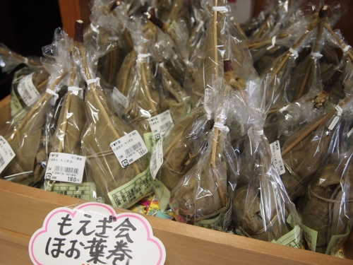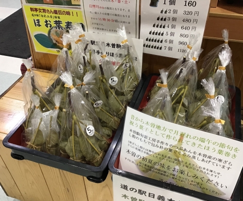 道の駅日義木曽駒高原では、木曽の和菓子の老舗「御菓子司田ぐち」、地元のお母さん達で構成される「もえぎ会」、そして道の駅日義木曽駒高原直営の「木曽駒旬彩工房」の3種類の朴葉巻きが販売されます。それぞれ特徴があり、違った美味しさが楽しめます。各種購入して、食べ比べるのもお勧めです。