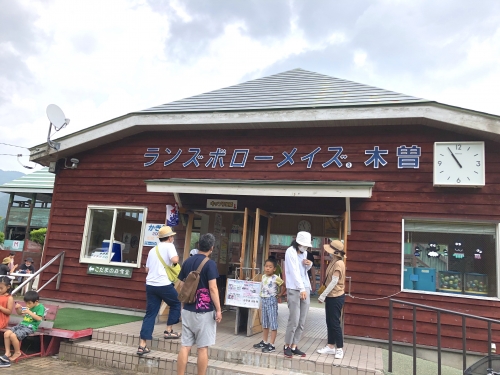 大きな木製の施設は、巨大迷路「ランズボローメイズ 木曽」。「ランズボローメイズ」とは、かつて巨大迷路ブームを巻き起こした会社のフランチャイズ迷路です。
