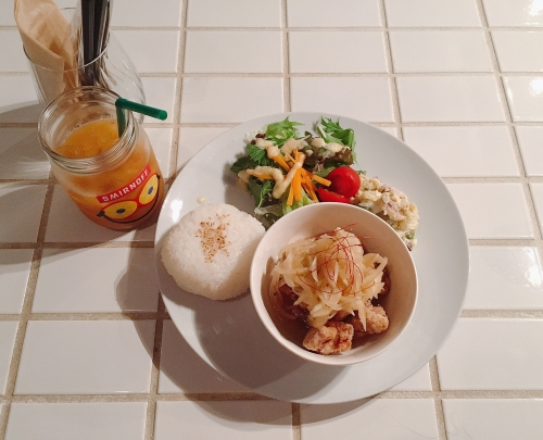 食堂は、旦過市場の食材を使った食事を楽しんでもらうということをコンセプトにした、おつまみからお食事メニューまで揃う素敵な空間。ここでは夜遅い時間でも、バーメニューの他にディナープレート(1,250円)があるのがポイント。日によって内容は変わりますが、おうちごはんのようにバランスの良い食事ができるのは嬉しい!上の写真はチチャロンという南米の肉料理風のおかずがメイン。ドリンクメニューは、アルコールもノンアルコールも充実しています。
