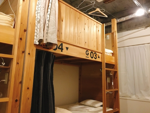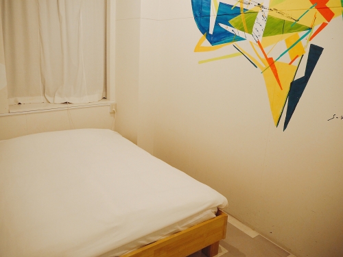 部屋はごくごくシンプル!といっても、鍵付き収納もコンセントもあり、必要なものはちゃんと揃っていて快適です。ナンバー式のドアで、施錠もバッチリ。水回りがないぶん広々としていてリラックスできます。ドミトリーも個室も、同様のデザインです。