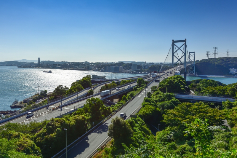 本州と九州との間を隔てる関門海峡。最も距離の短い所だとその間わずか700m弱しかありませんが、本州と九州とを結ぶ連絡橋として昭和48年(1973年)11月14日に開通したのが長さ1,068mの関門橋です。完成当時は東洋一の長さを誇った橋というだけあって、その様子は本州側と九州側のどちらから見ても、とってもダイナミックで圧巻の光景!今回はそんな美しい関門橋を望むことの出来る絶好のビューポイントを、本州側と九州側からそれぞれ1つずつ紹介していこうと思います。