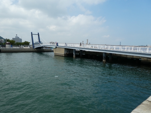 船溜まりを取り囲むようにみどころが集約されている、門司観光には欠かせない橋。船溜まりに入港する船の為に開閉式になっていますので、「はね橋」とも呼ばれています。船が入・出港する際には橋が開いてしまう為、渡る事はできなくなります。
