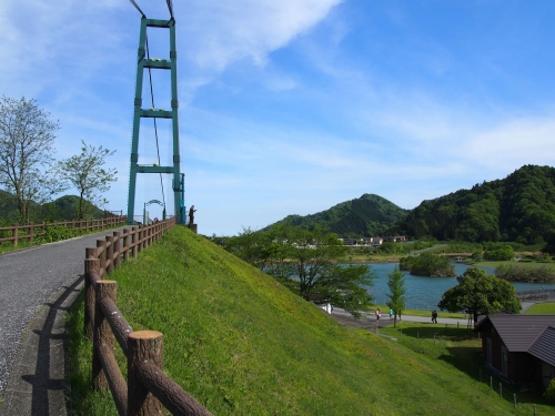 神奈川県唯一の村・清川村にある「宮ヶ瀬湖畔園地」は、宮ヶ瀬ダムとは湖を挟んで向かい側にある公園。湖の上を渡る歩行者専用の大吊橋は315mもの長さ。広大な芝生や水辺のある園地や、山と宮ケ瀬湖の雄大な景色を眺めることができます。