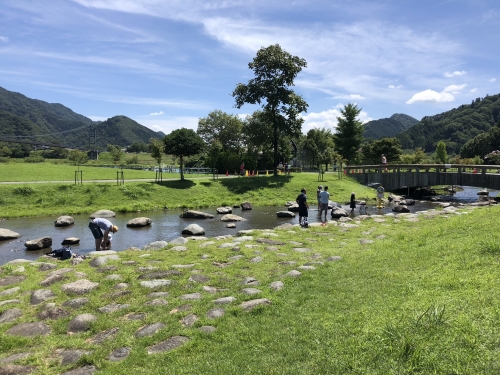 それほど広くはありませんが、子どもが楽しめる遊具のスペースもあります。また、じゃぶじゃぶ池など園内を流れる小川は、夏には水遊びの子どもたちで賑わうスポットです。