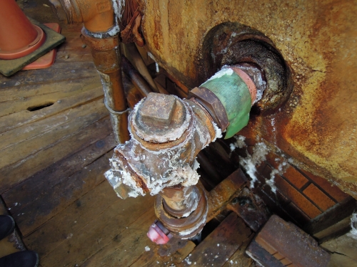 • 写真:ゆきたか給湯設備に付着した温泉の塩分。