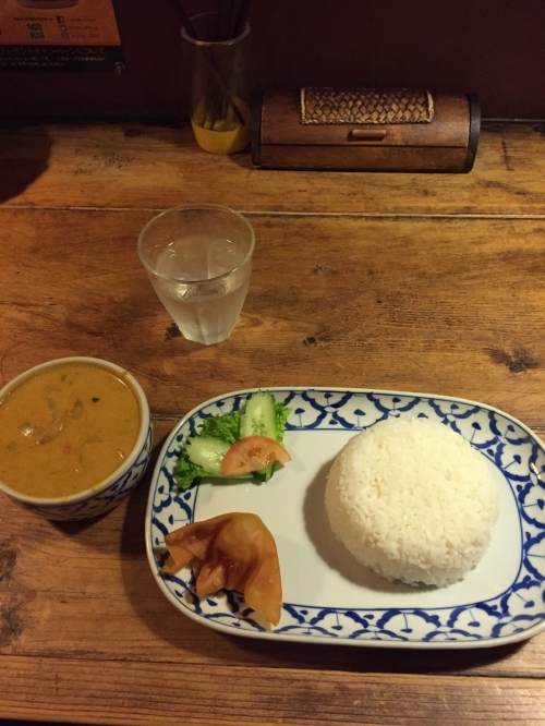 平日ランチ(1,080円)で、ココナッツミルク風味の「ゲーンカリー」をオーダーできます。具は鶏・豚・エビ・牛からチョイス。