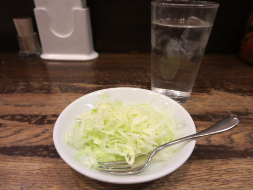 すぐにキャベツのサラダをカウンター越しに渡されて、素早く盛り付けられたカレーが目の前に!そしてアッと言う間に美味しく完食です♪