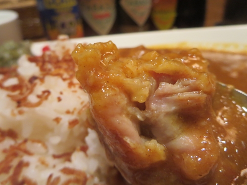 トロミのある、優しい味のカレーを提供しています。お家のカレーのようで親しみを感じますが、揚げられた鶏肉が2切れゴロッとトッピングされていることで、グレードアップ!口の中にジュワッと広がる鶏肉の美味しさがたまりません。