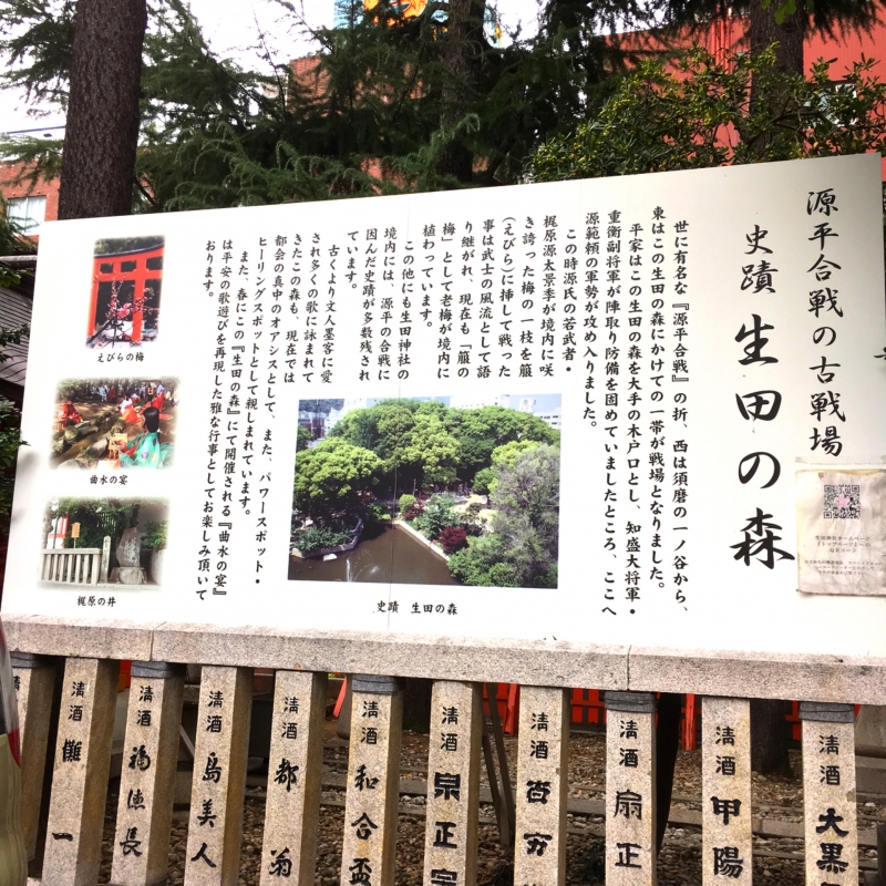 その後も、室町時代の南北朝戦争や、戦国時代の荒木村重の謀反による織田信長との戦でも戦場になるなど、生田の森は数多の戦を見届けて来た歴史ある古戦場なのです。
