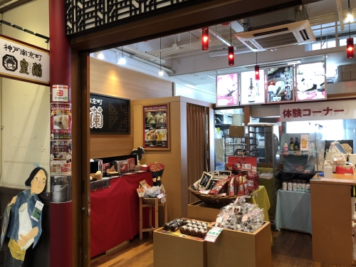 小学校の佇まいが楽しくなる館内の1Fには、神戸名物の品が揃ったお土産屋さんがたくさんあります。神戸の中華街 南京町 からの出店「皇蘭」では、オリジナル肉まん作り(3個1,680円)ができたり、「灘の酒蔵通り」では試飲ができたり。