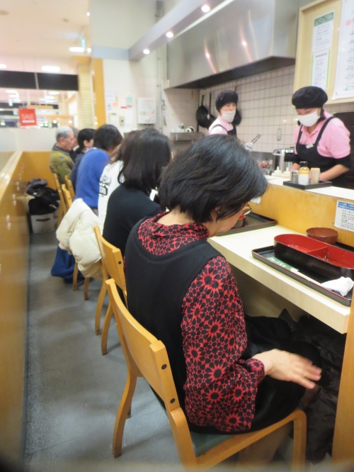 カウンター7席だけのイートインスペースは、お客さんの出入りの際に背中側が狭く感じますが隣の席とは比較的余裕がありますので、ゆったりいただけます。食べ終えるとすぐに席を立たれるかたが多いですので、順番は早く回ってくるような感じがします。