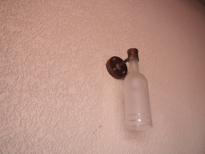 壁のライトがワインボトルの形で、おしゃれ!写真ではわかりにくいですが、ブドウのロゴマーク入り。こちらは、神戸ワインのロゴマークです。