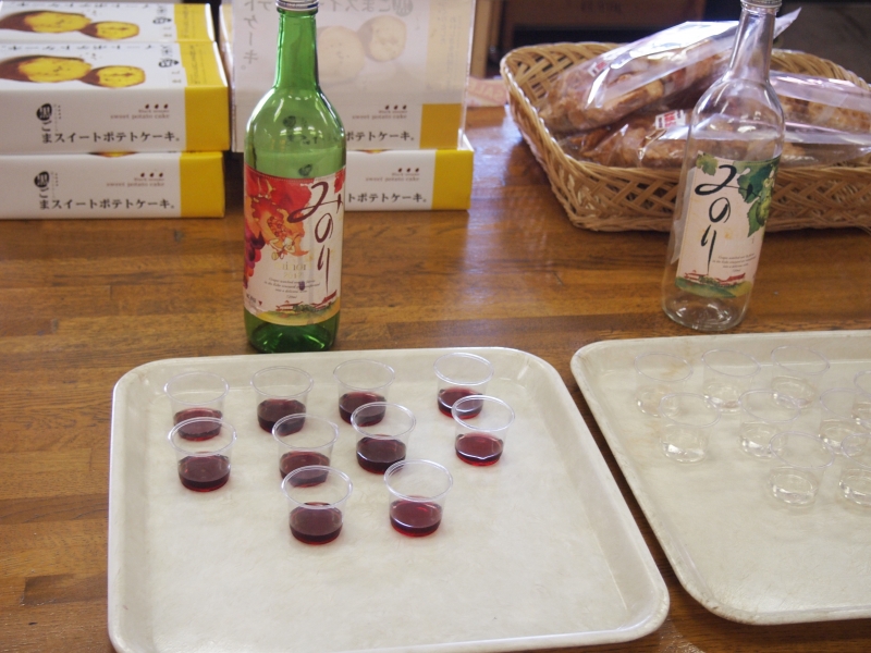 試飲用の「みのり」というワイン。今回筆者は、こちらの白ワインを購入。ほんのりと甘味があってさわやかな味。価格は1,404円です。