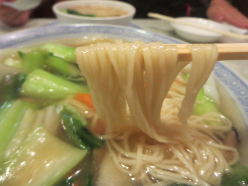 スープの味は薄く感じるかもしれませんが奥深く、使われている素材本来の味が生かされていて丁寧に作られたということが伝わってきますよ。スープには青梗菜と白髪ねぎがトッピングされています。特に白髪ねぎの歯ごたえがいいです。麺は柔らかめにゆがかれています。