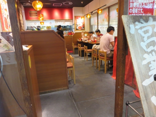 赤と白が印象的な木目調の落ち着いた内装です。カウンター席はありませんので、お一人様でも2人掛けか、2人掛けの席が一杯になると4人掛けのテーブル席に案内されますので、広々と食べられます。女性客のお一人様も多くいらっしゃいますよ♪