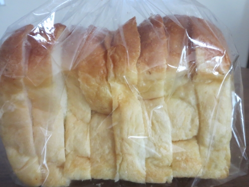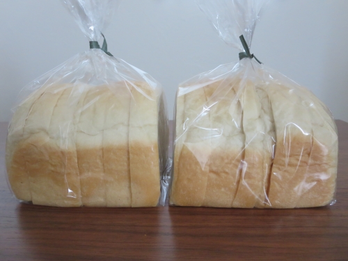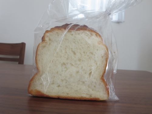 購入する際はパンはまだ熱々のことが多く、紙に包んでからショッパーに入れてくださいます。お会計の時に、「パンは早目に出してくださいね。」と言われますので、帰宅したらすぐに紙を外しましょう。時間が経つと紙が食パンにくっついてしまうことがあります。