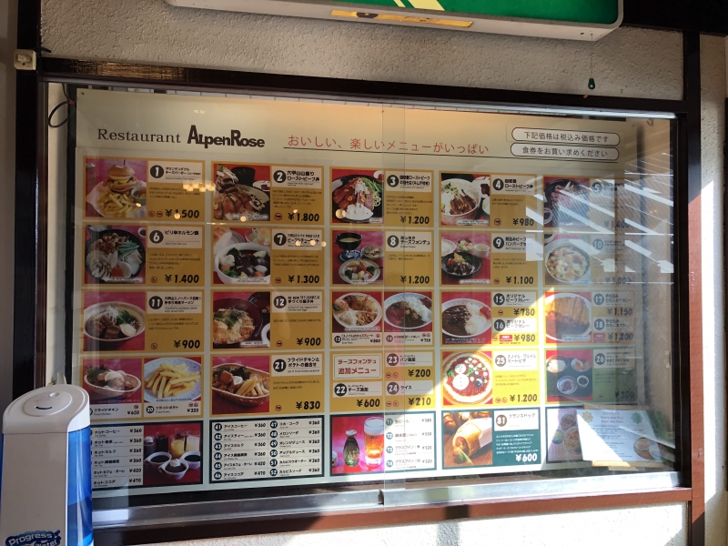 ゲレンデのレストラン【アルペンローゼ】はメニューも豊富