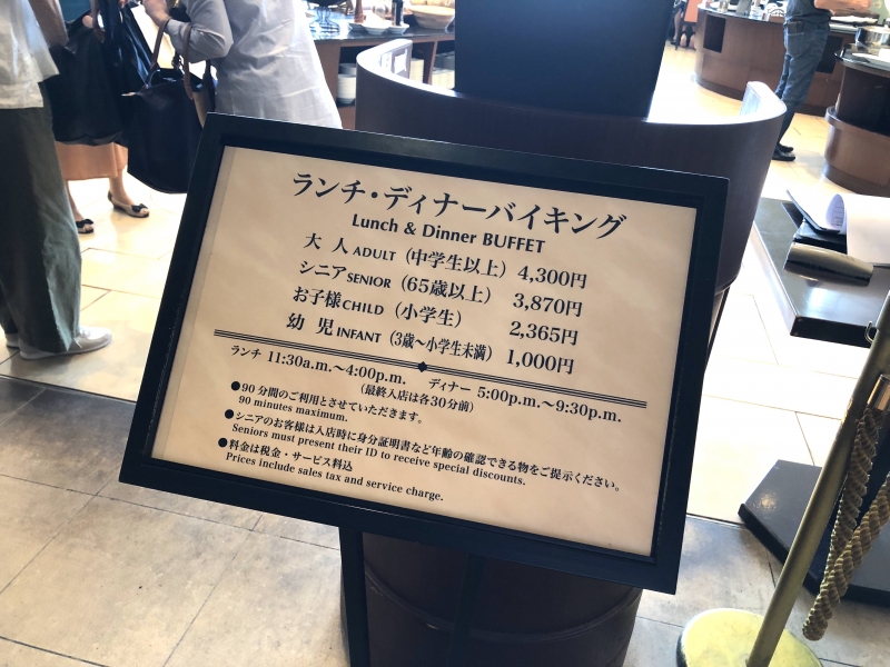 一流のホテル、一流の料理長が提供するバイキングなので、一般的な料金からすると高いかもしれませんが、年齢別に料金設定が細かく分かれているところが、ホテル側の心遣いを感じます。