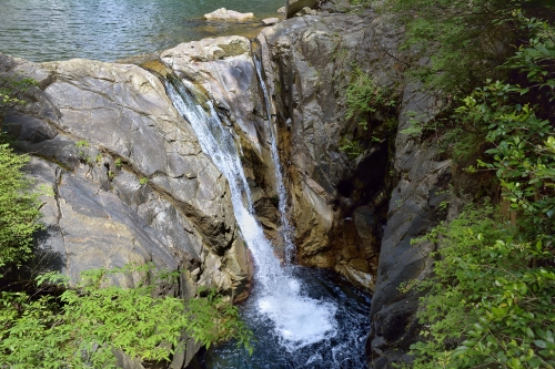 全部で4つの滝から成り、上流から順に、雄滝(写真左)、夫婦滝(写真右)、鼓滝、雌滝 。六甲山を訪れるハイカーにも人気があるんだそう。