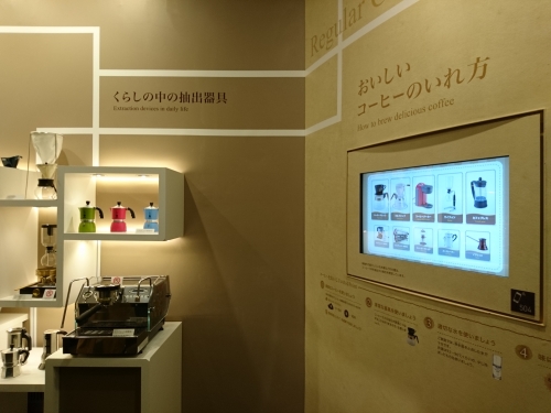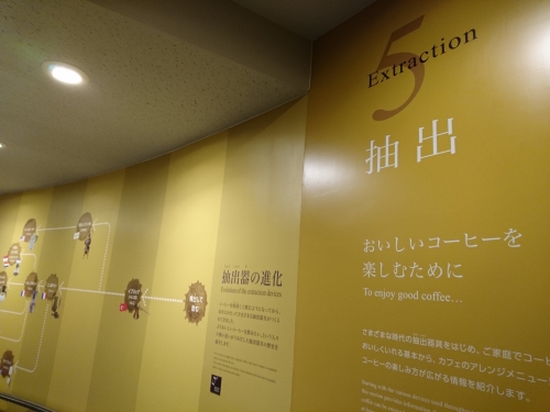 抽出について紹介されている展示室5では、コーヒーを美味しくいれる基本からアレンジメニューまで、コーヒーの楽しみ方が広がる様々な情報が紹介されています。