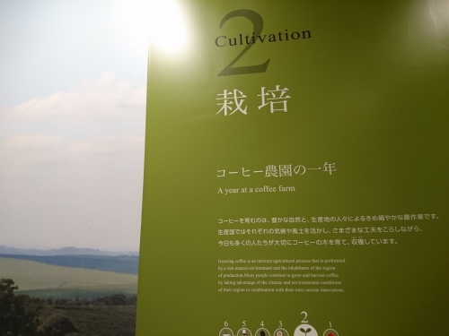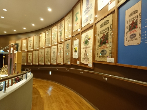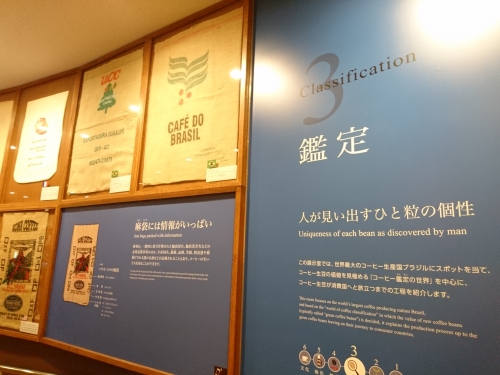 展示室3のフロアでは、香りや味を厳しく検査するブラジルのコーヒー鑑定を中心に、コーヒー生豆が消費国へと旅立つまでの工程について紹介されています。