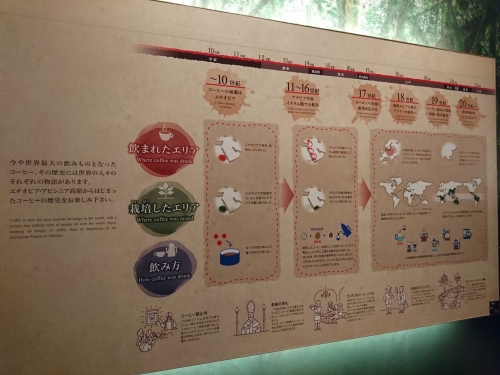 こちらのフロアでは、エチオピアで発見されたコーヒーが世界中で愛される飲み物になるまでの壮大な歴史が紹介されています。