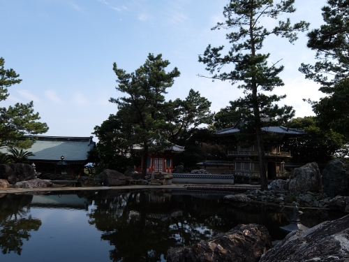 四国最南端の足摺岬に位置し、37番岩本寺からの距離は札所間最長の約90㎞。インドの観音が住むと言われている「補陀落山」に最も近いため、ここに弘法大師は寺院を開いたとされ、境内には池や岩、亜熱帯植物が茂り、極楽浄土の世界観が表現されています。