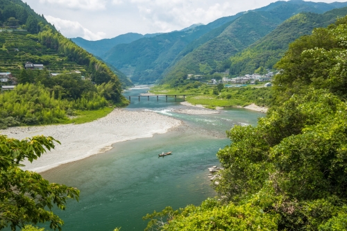 きらめく宝石のような青い水は”仁淀ブルー”と評され、「全国1級河川平均水質ランキング」でも1位を獲得するなど、その美しさが話題の川。全長124kmで、四国三大河川のひとつに数えられています。屋形船でゆっくりと清流下りを楽しんだり、カヌーやラフティングでアクティブに楽しんだり。支流にある「安居渓谷」や「中津渓谷」もまた透き通る水と自然美が堪能できます。