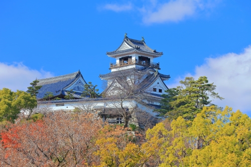 標高44.4mの大高坂山上に築かれた典型的な平山城。江戸期以前から今日まで現存している12天守のひとつです。慶長16年(1611年)に完成し、その後大火にみまわれ焼失しましたが、宝暦3年(1753年)に創建当時の様式で再建が完了。天守や懐徳館(本丸御殿)など15棟の建造物が国の重要文化財に指定されています。天守内には、高知城が築城された当時の様子や、かつて盛んに行われていた鯨漁の様子をジオラマで再現しているコーナーがあるほか、展望フロアからは、高知市内を一望することができます。また山内一豊と妻・見性院が住んだといわれている本丸御殿(懐徳館:かいとくかん)では、美しい庭園や上質なお部屋を見学できます。