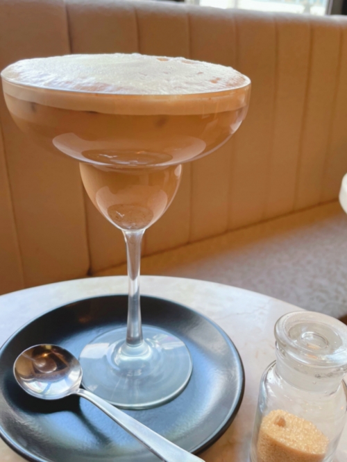 また、写真右「泡の雲ミルクティー(650円)」は、席で注いでくれる一杯。カソナードというザラメのような甘いお砂糖をかけてスプーンでいただきます。ドリンクですがスイーツのような雰囲気も味わえます。