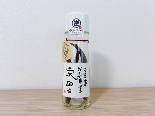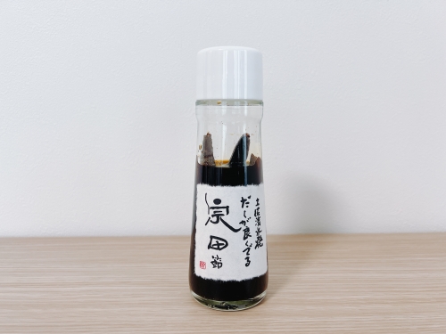 ソウダガツオで作る宗田節の全国シェア約7割を誇る、高知県土佐清水市。その土佐清水市で近年注目のお土産が、ウェルカムジョン万カンパニーの「だしが良くでる宗田節」です。瓶の中に宗田節が40グラム入っており、お好みの醤油を入れ、冷蔵庫で10日間~2週間ほどねかせます。すると、出汁が効いた絶品のお醤油に大変身!