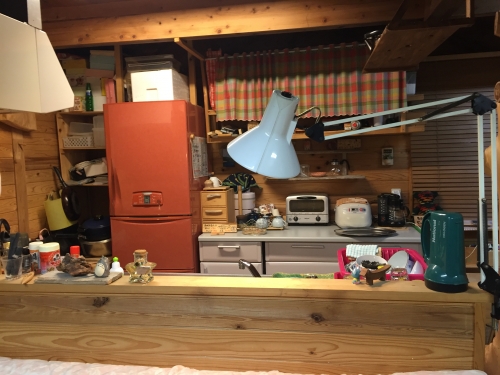 1階は、リビング、キッチンになっています。自炊できるようキッチン道具も全て揃っており、自由に使うことができます。