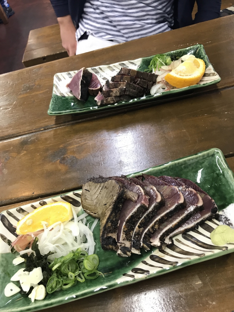 中でもオススメなのは、カツオの藁焼きを体験し、その場で食べられるお店「土佐タタキ道場」。午前10時30分開店ですが、その日仕入れたカツオが無くなり次第終了となります。予約も不可なので、連休に行く場合はお早目に!行列必至のお店ですが、回転が早いので待ち時間は思ったより少ないです。