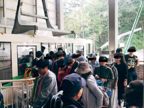 ロープウェイも非常に混雑することが多いです。余裕をもって早く並ぶことで、景色を見られる窓側やつり革近くで乗車できますよ。満員の場合、すこし中が暑くなりやすいのでお水等を事前に用意しておくといいでしょう。