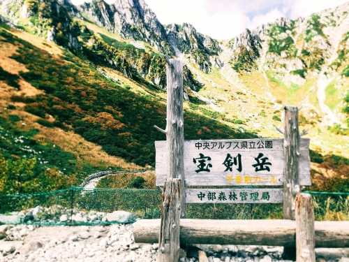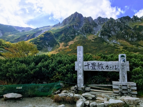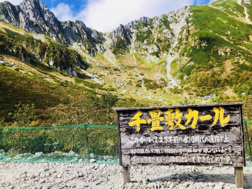 ここでは、千畳敷カールの山々だけでなく、このような看板と一緒に写真を撮ることができます。記念撮影にも適していますね。