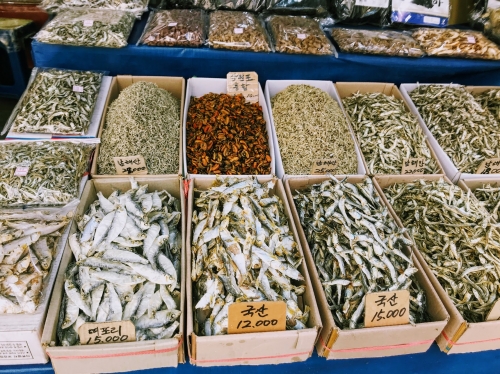 チャガルチ市場は7階建ての大型ビルの1階にある中の市場と、そのビルの外にも市場があり、たくさんの海産物や干物の姿をみることができます。中よりも外の雰囲気の方が好き、という方も多いです。