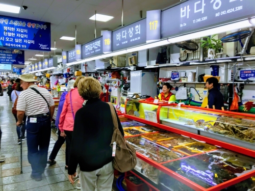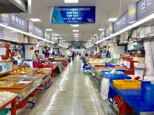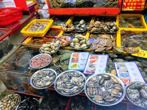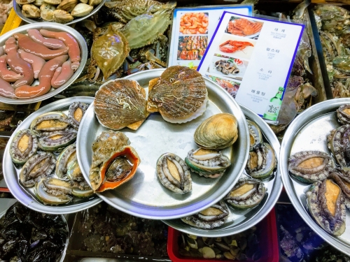 写真:WriterA「チャガルチ市場」は港町釜山を代表する観光地であり、釜山最大規模の海鮮市場です。ビルの中と外にそれぞれ市場を構えており、どちらも違った様子で楽しさ満点!生け簀に入った新鮮な魚を、その場で調理してもらって食事をとることもできますよ。