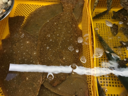 まずはなんといっても生け簀巡り。アワビ・ハマグリ・ホタテは勿論、ナマコもいましたし、ヒラメも生け簀にたくさん入ってました。