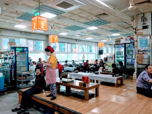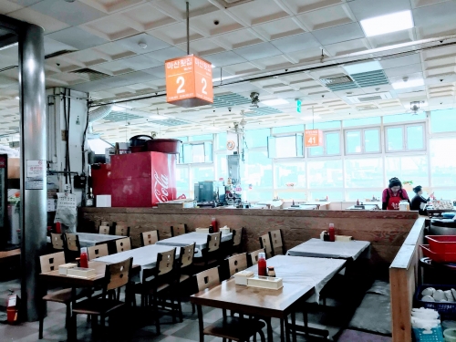 選んだものは、2階の食事スペースで頂くことができます。チャガルチ市場で食事を食べるとしたら、やはりお昼や夜など、お腹が空いているときがお勧めです。海鮮をたくさん満喫することができますよ!