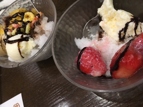 自分で好きなようにトッピングできる、かき氷やアイスクリームのコーナーもあります。