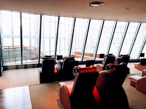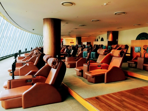 リラックスルームには、日本製のリラックスチェアーが導入されています。テレビが各チェアーに導入されているので、くつろいでテレビを見たり、新聞や雑誌も楽しめます。勿論睡眠もOKです!
