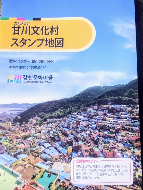 この地図には、甘川文化村の歴史、甘川文化村のアートスポット、地図などがものすごく詳しく書かれているので、ある意味、入場料と思って1組1冊は買うことをお勧めします。日本語で書かれている地図もあるので、わかりやすいですよ。