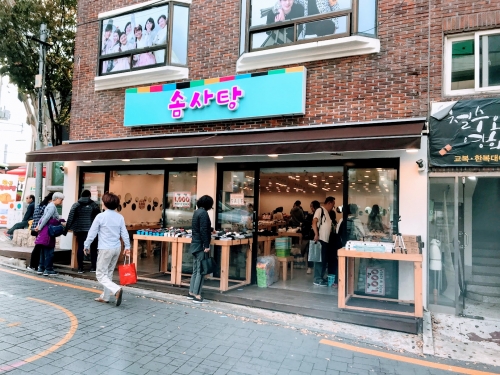 「ソムサタン(솜사탕)」という、甘川文化村の入り口にあるお店で購入することができます。まとめ買いするとかさばるので、帰りに寄りたいショップですね。