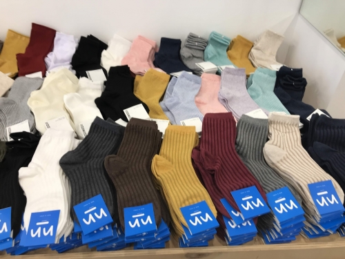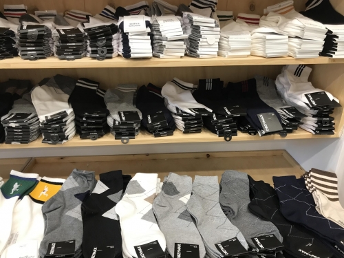 韓国では、靴下が激安で売っているお店が多く、100円からまとめ買いすることができます。筆者も、職場で使用する黒い靴下をまとめ買いしました。