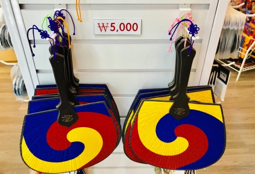 韓国模様や、ハングルが一面に描かれているうちわです。夏にはこれを買って、涼みながら甘川文化村をめぐるのもいいかもしれません。