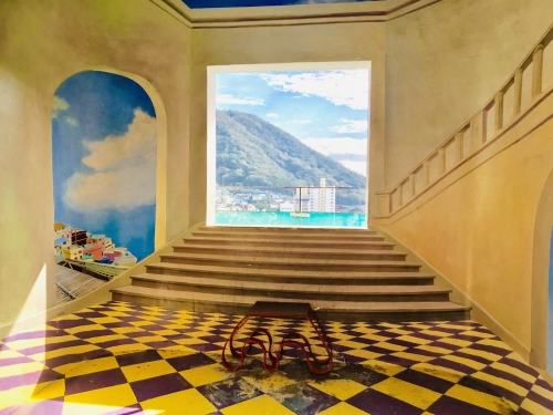 中がこのようになっていて、まるで灯台のバルコニーから撮ったような、だまし絵風の写真が撮れるのです。だまし絵のクオリティとしては、最高級!とは言えませんが…一個の思い出作りとしては、とてもお勧めできるスポットです!