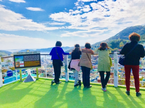続いて、甘川文化村を一番高い展望台(ハヌルマル)から眺めましょう!カラフルな住宅から釜山の海まで、一気に見ることのできる展望台を目指します。