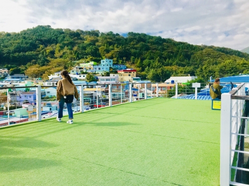 この展望台は、甘川文化村でも必ず立ち寄りたい場所です。甘川文化村を一望するには最適な場所で、その絶景に息をのむこと間違いなし。場所は、スタンプ地図の「15番 ハヌルマル」にありますよ。甘川文化村の入り口から3分ほどと近い場所にあります。