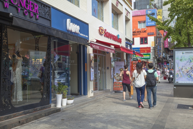 各国の大使館や領事館があり、米軍基地も近くにあることから、インターナショナルな雰囲気が味わえるエリア。ランドマーク的存在の「ハミルトンホテル」の裏通りは「世界飲食文化通り」と言われており、各国のレストランが軒を連ねています。また「経理団通り(キョニンダンキル)」には、おしゃれなカフェやショップが進出してきており、梨泰院の中でも最もホットな場所として知られています。