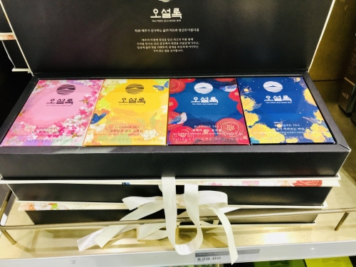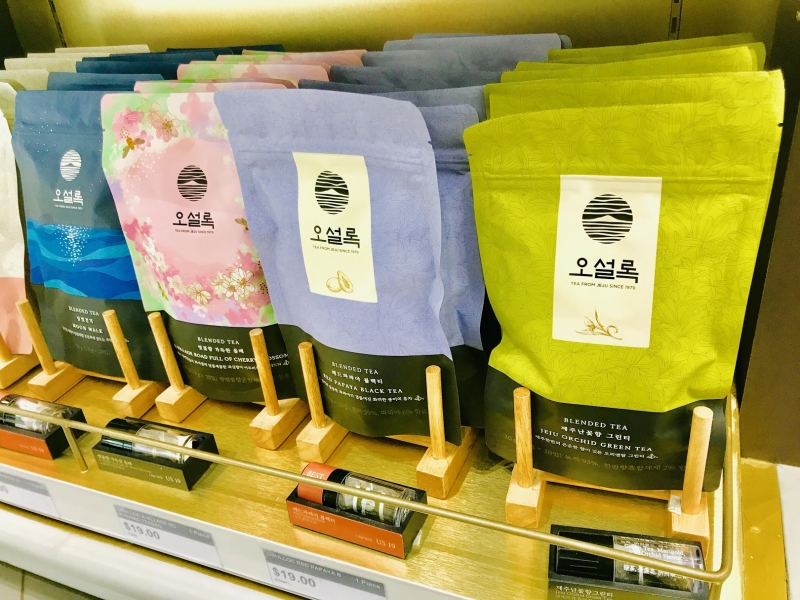 韓国では「お茶」も盛んに飲まれています。緑茶やジャスミン茶、パパイヤ茶など、たくさんの種類を取り扱っています。こちらは、香りのサンプルもあり、実際に香りをかいで購入できるので、苦手なフレーバーを買ってしまうような失敗もありません!1袋19ドル(≒2,300円)です。